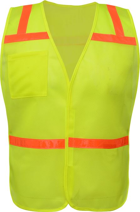 This economic enhanced visibility hi-vis vest from GSS features 2” reflective tape set on bright reflective edging to give the user extra visibility.  This safety vest features 6 pockets, including 2 inside pockets and a zipper front closure.  Made from 100% polyester air mesh for maximum breathability, this vest is designed to keep you cool and comfortable even during the longest shifts. The 2” wide reflective tape enhances visibility, so you stay seen and safe in low-light or high-traffic environments..
