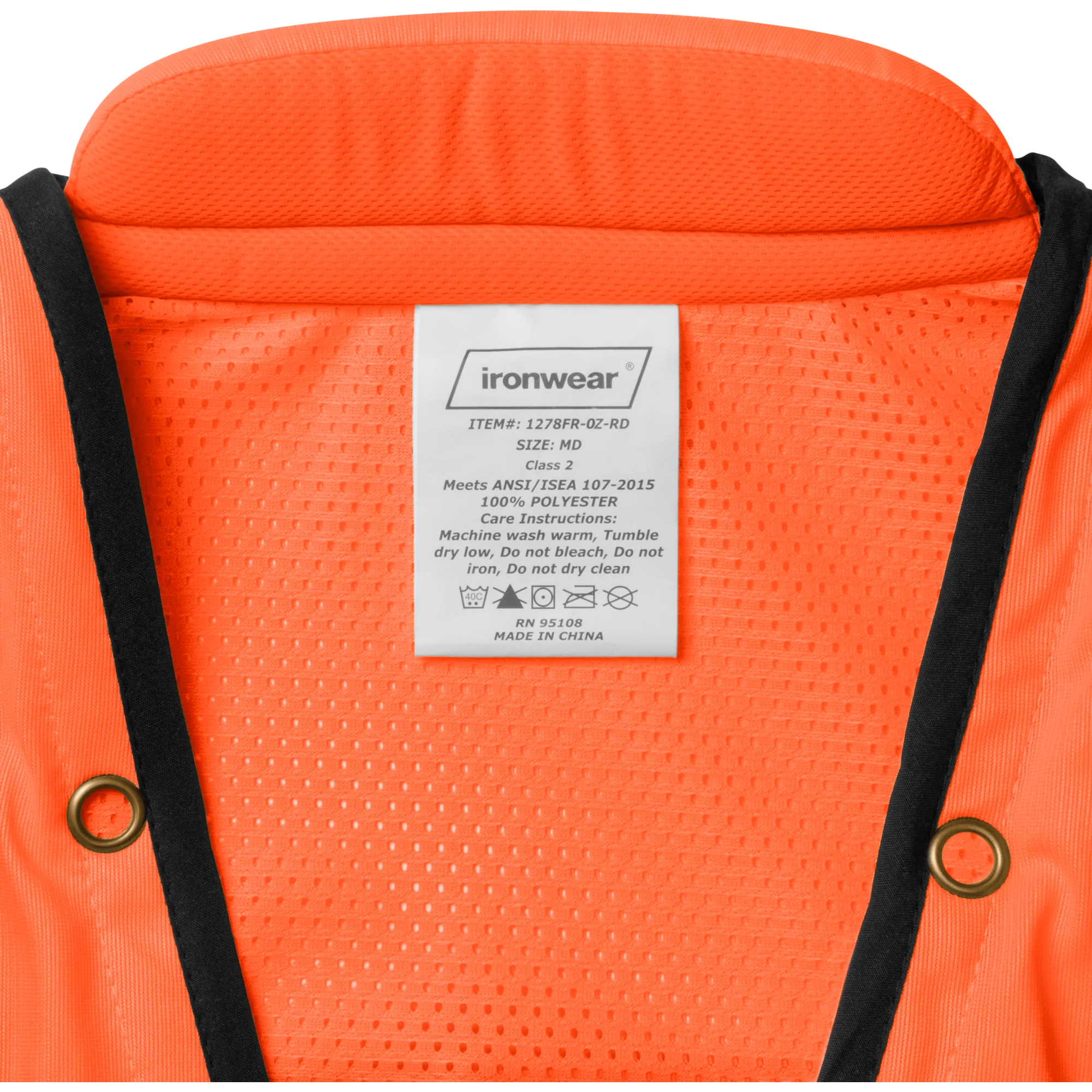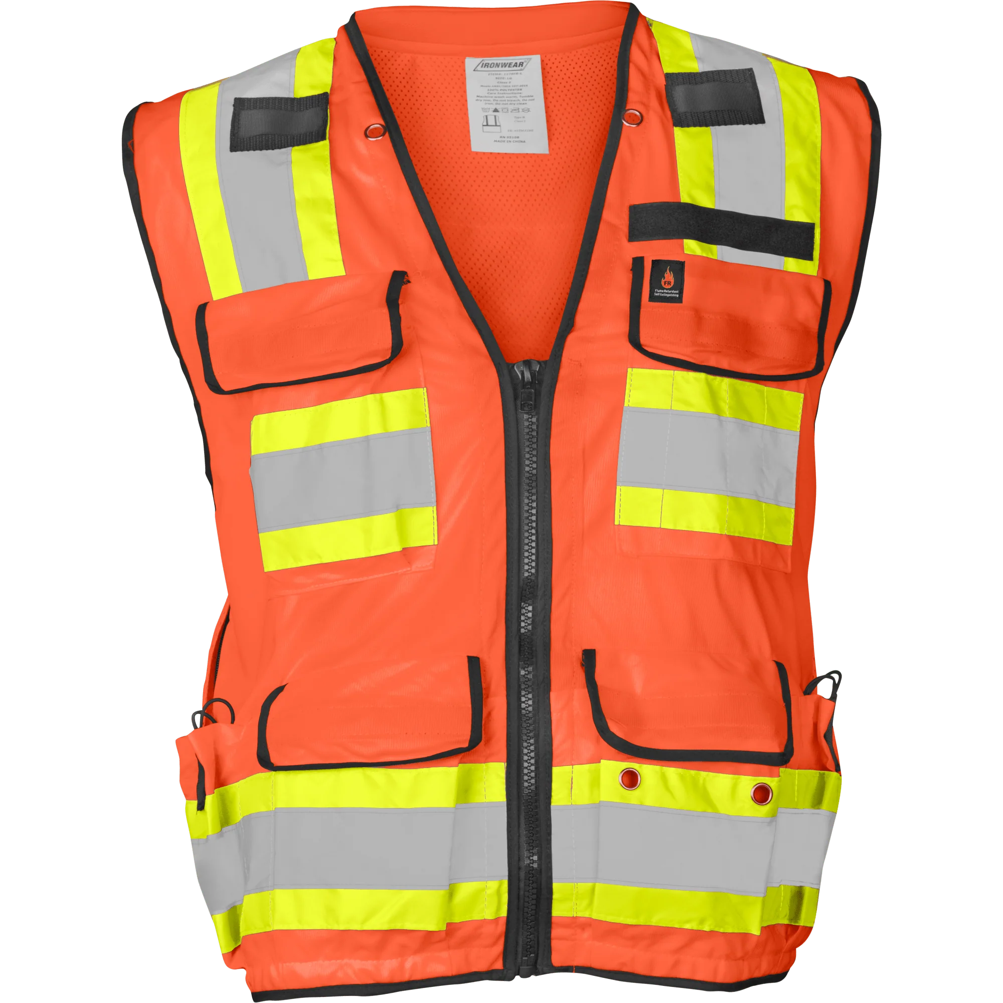 Ironwear® 1278FR Class 2 Hi-Vis Orange Premium Self-Extinguishing Surveyor Vest, Reflective Two-Tone