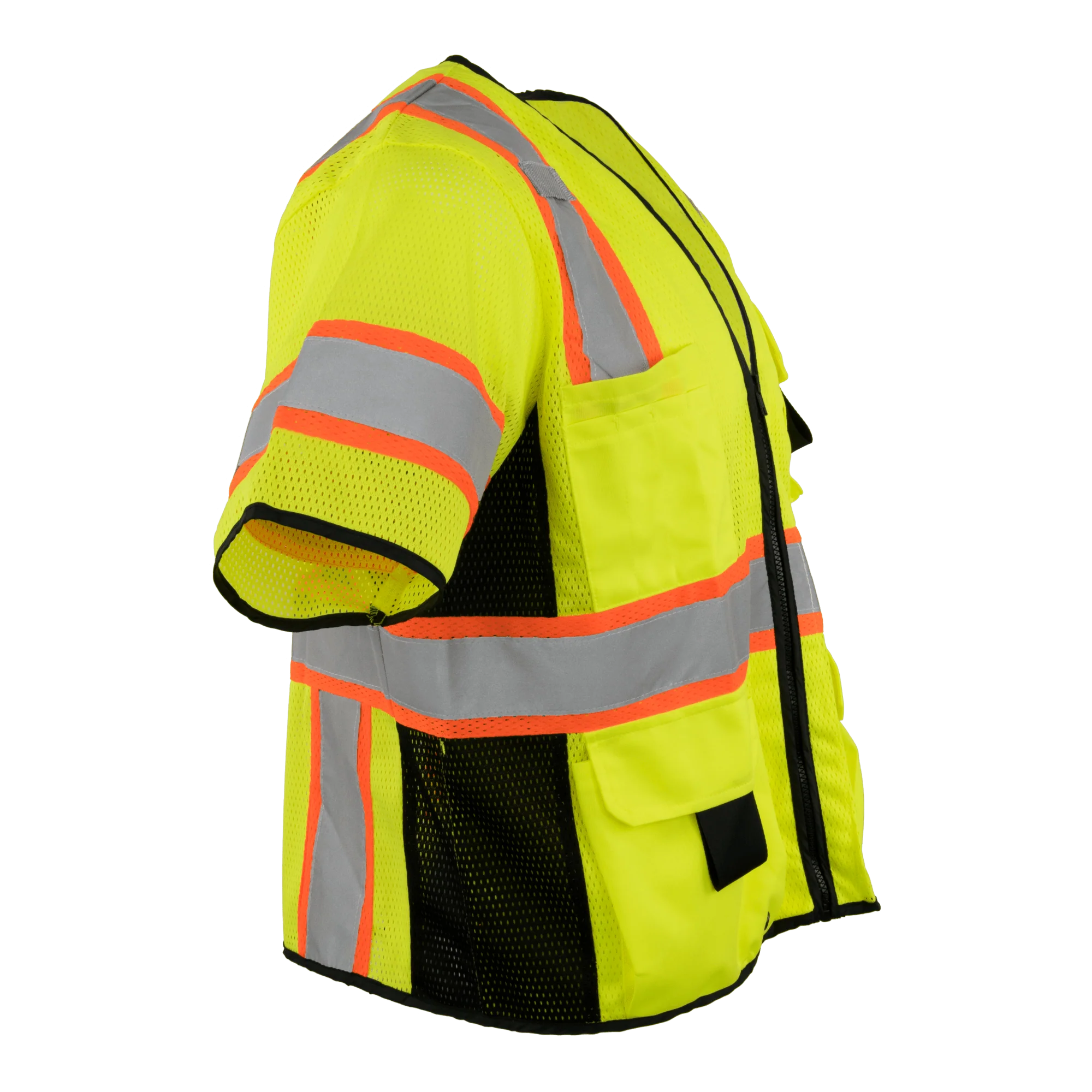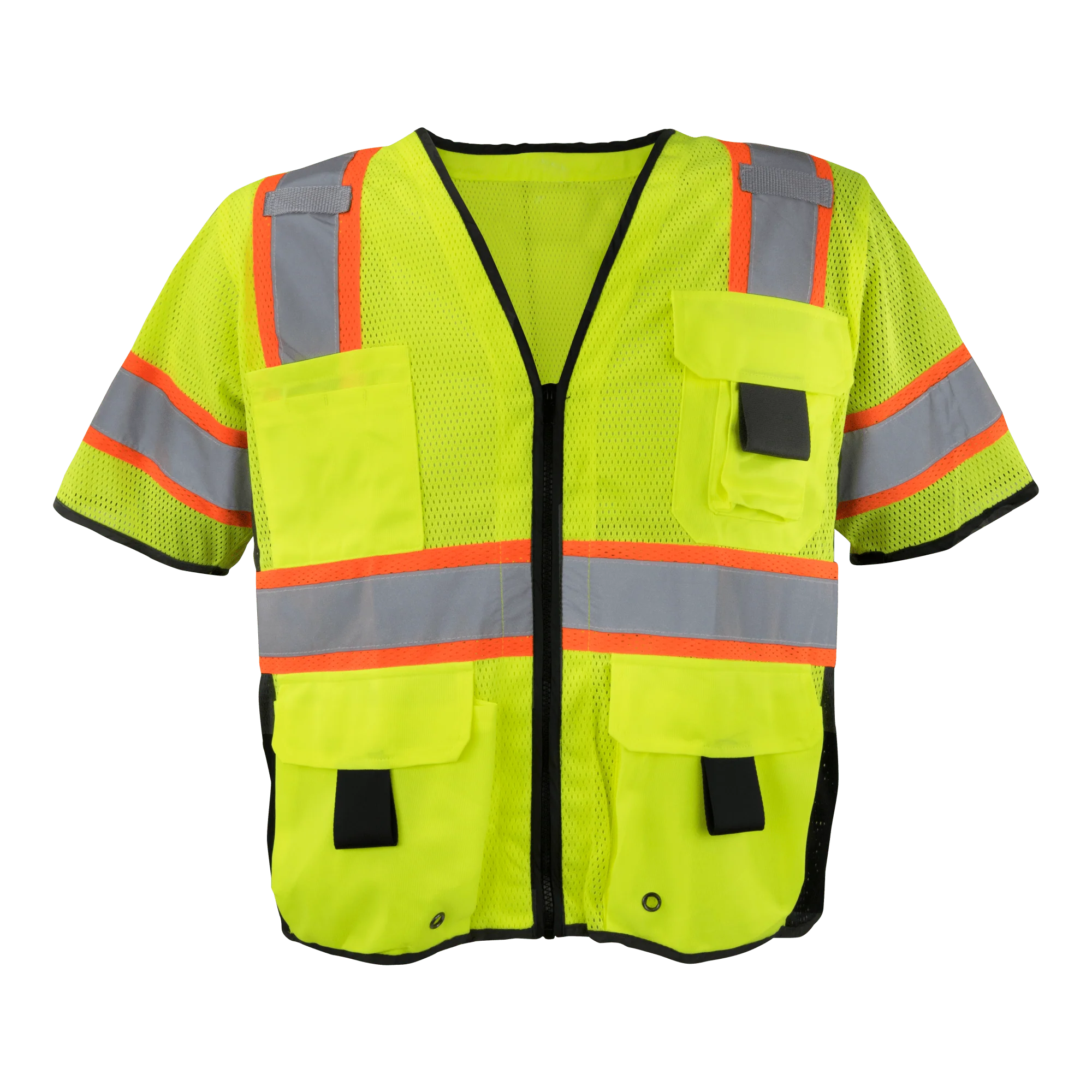 Ironwear® 1296 Class 3 Hi-Vis Mesh Safety Vest, Hi-Vis Lime, Two Tone, Zipper & Radio Clips