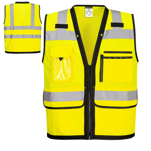 Portwest US378 Heavy Duty Hi-Vis Surveyor Vest, Yellow, Class 2