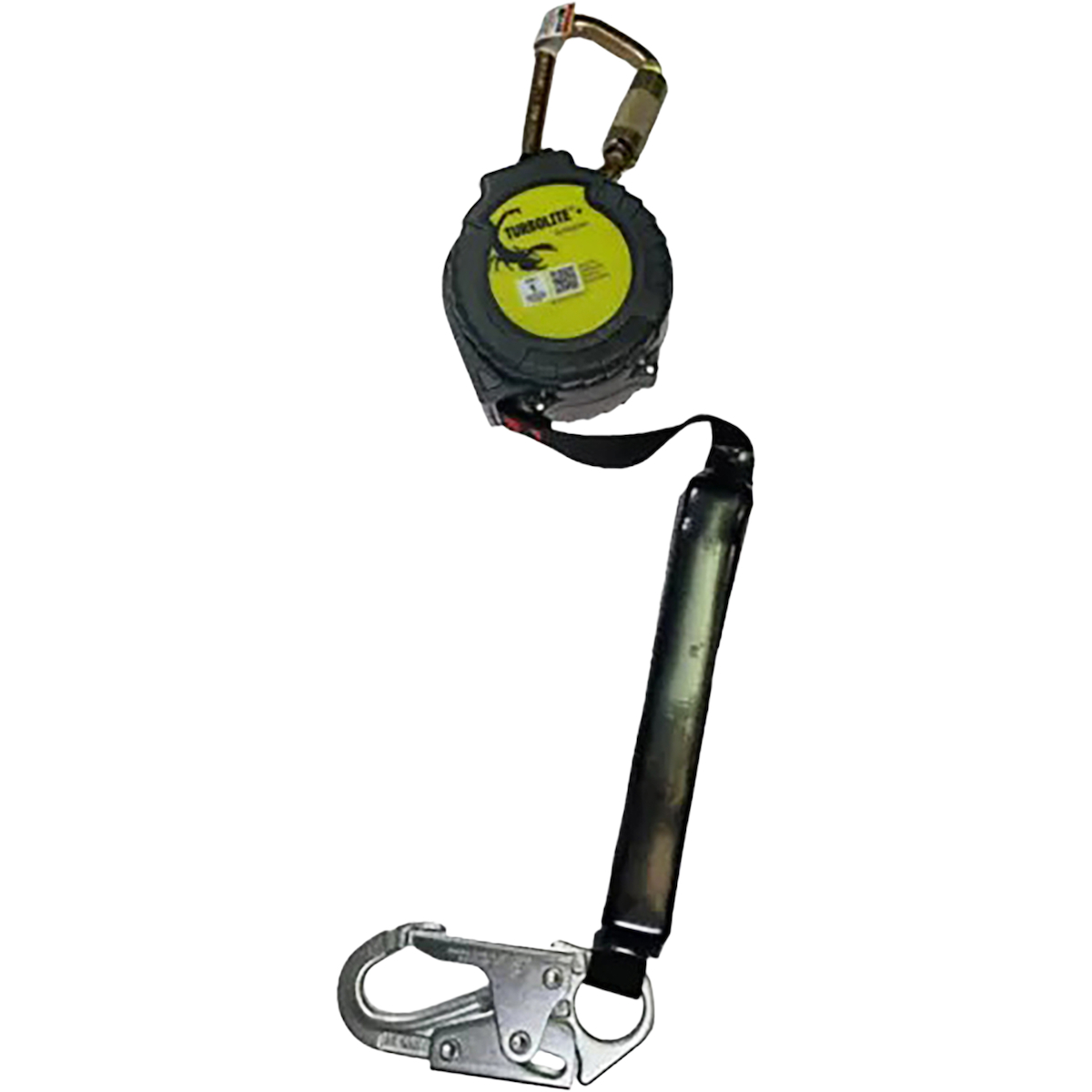 For secure attachment, the unit is equipped with Miller 5K® locking snap hooks, offering a 5,000 lb gate load capacity for dependable tie-back connections. Housed in a high-impact resistant nylon casing with improved UV-resistant labeling, the TurboLite+ T-Bak™ SRL is built for long-lasting performance on demanding jobsites.