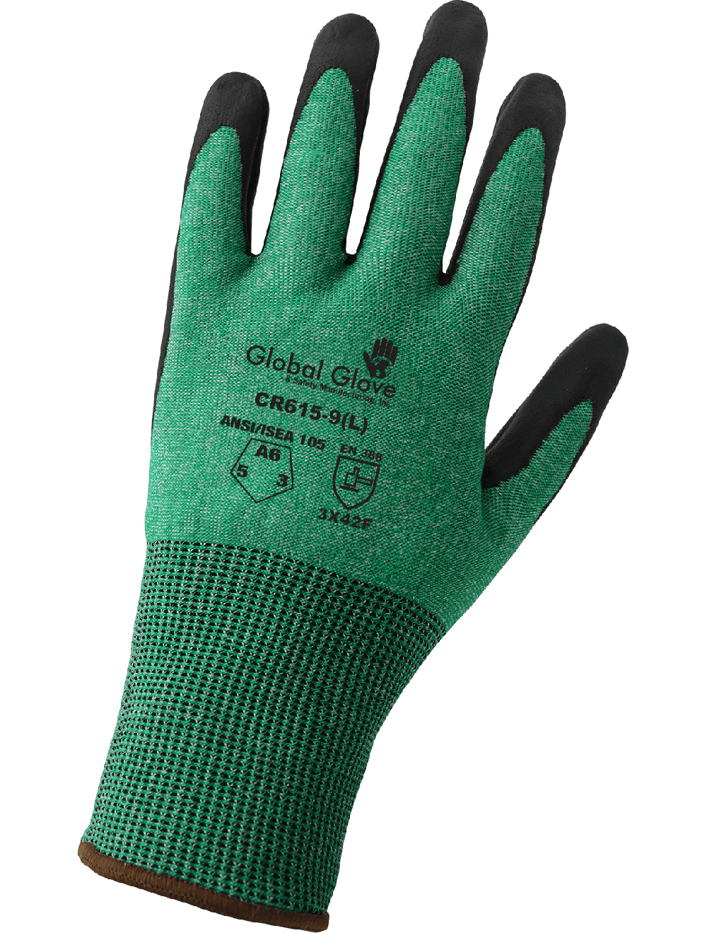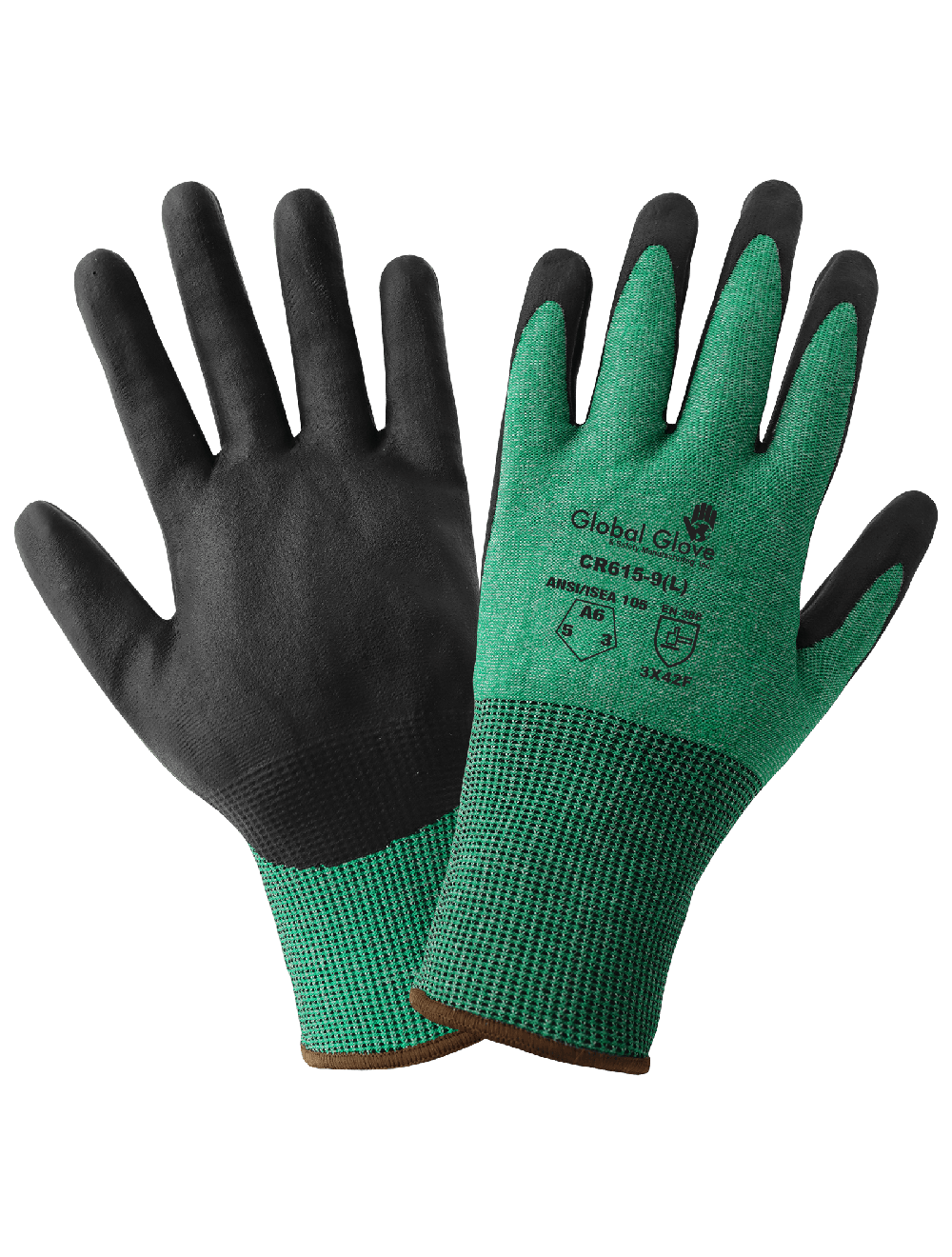 Global GloveŽ CR615 Green & White HPPE Nitrile Coated Gloves, Cut, Abrasion and Puncture Resistant, Dozen