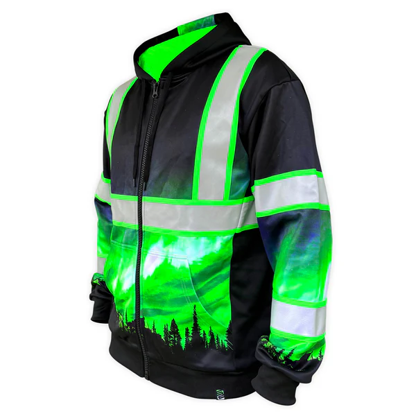 SafetyShirtz SS360 Northern Lights Zip-Up Safety Hoodie - Black & Florescent Green, Type O