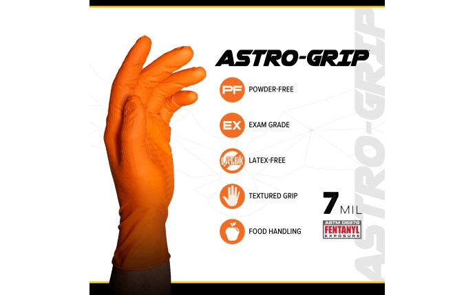 SAS Astro-Grip Orange Nitrile Disposable Exam Grade Gloves, 7 mil, 100 Gloves/Box, 10 Boxes/Case
