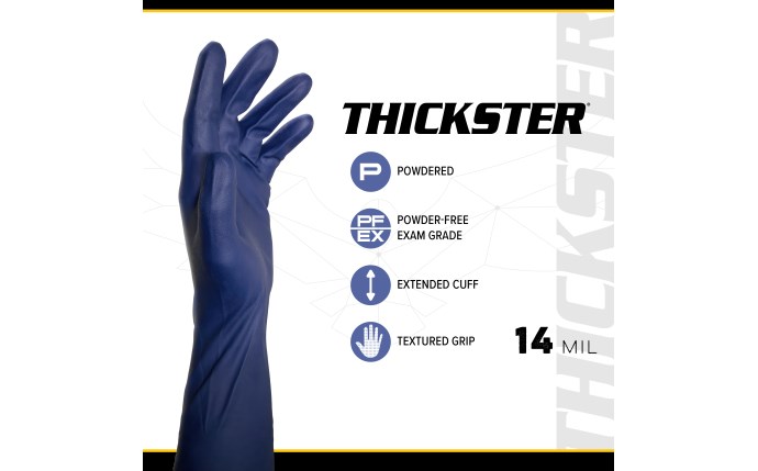 SAS Thickster Latex Disposable Gloves, 12" Length, 14 mil, 50/Box, 10 Boxes/Case